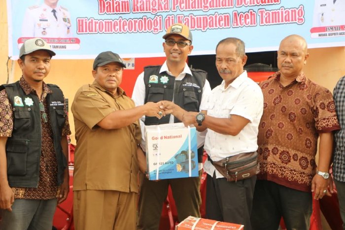 Adapun bantuan yang diberikan berupa mesin pompa air sebanyak 400 unit, mesin doorsmeer dan selang tembak 304 unit, gerobak sorong 515 unit, serokan air lantai 520 unit dan toren air 1000 liter 400 unit.
